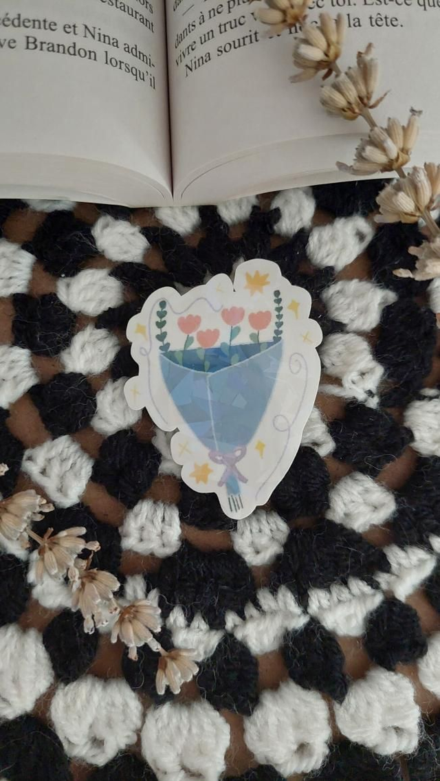 L'autocollant représente un bouquet de tulipe qui brille.
