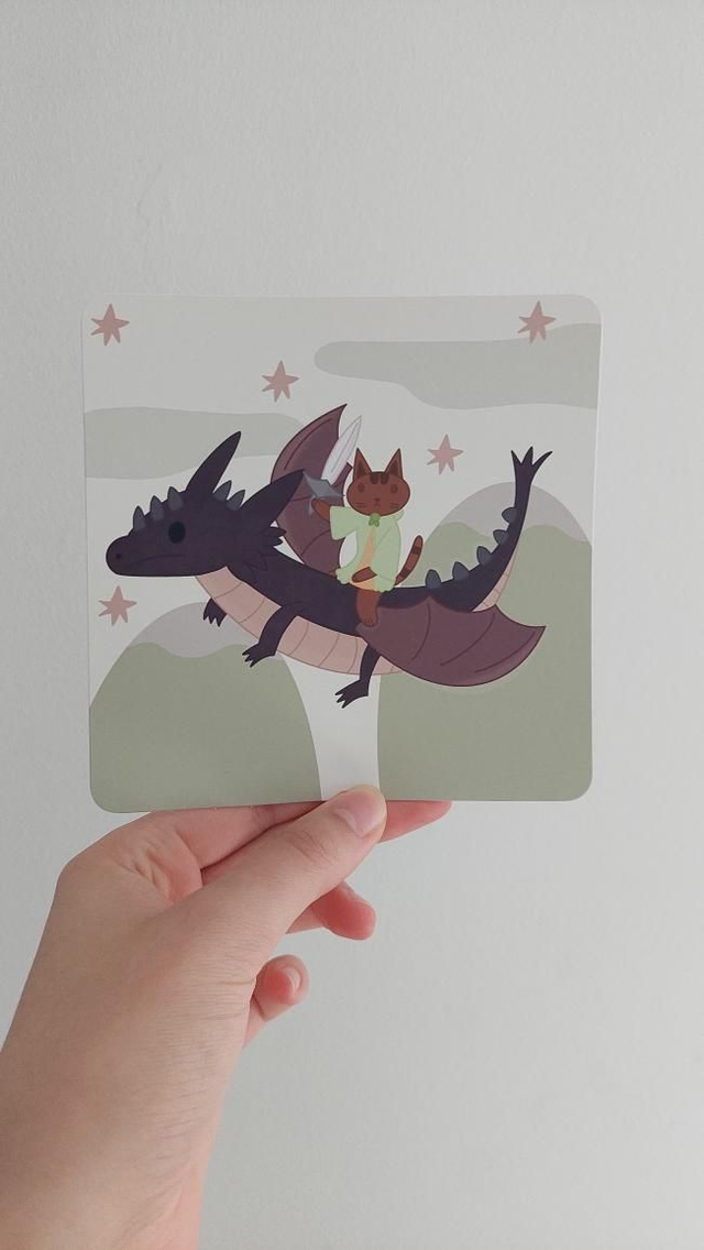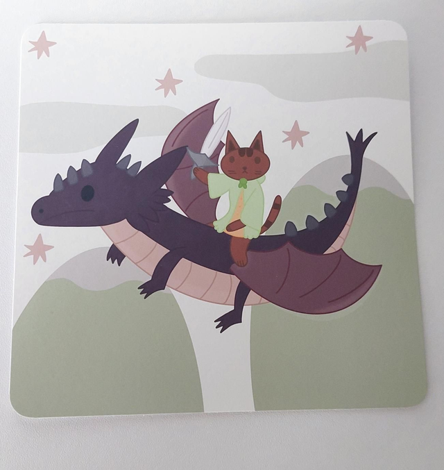Chatou avait peur mais il devait essayer de monter sur son dos. Il caressa tendrement le museau du dragon. Au début, le dragon était réticent parce qu'il n'avait pas l'habitude que quelqu'un s'approche de lui. En général les gens avaient peur de lui. En voyant ce chat un peu peureux, réussir à l'approcher comme ça lui fit plaisir. Du coup il se détendit sous le toucher du chat. Le dragon ferma les yeux. Chatou contourna le dragon et en se hissant sur la pointe de ses pattes, il réussit à monter sur le dos du dragon. Il se tient fort sur ses écailles pour ne pas tomber. D'un coup le dragon s'élança dans les airs. C'était si haut. Il était en train de voler dans le ciel. De voler sur le dos d'un dragon. Si ça ce n'était pas une aventure. Il savait que ce n'était que le début.