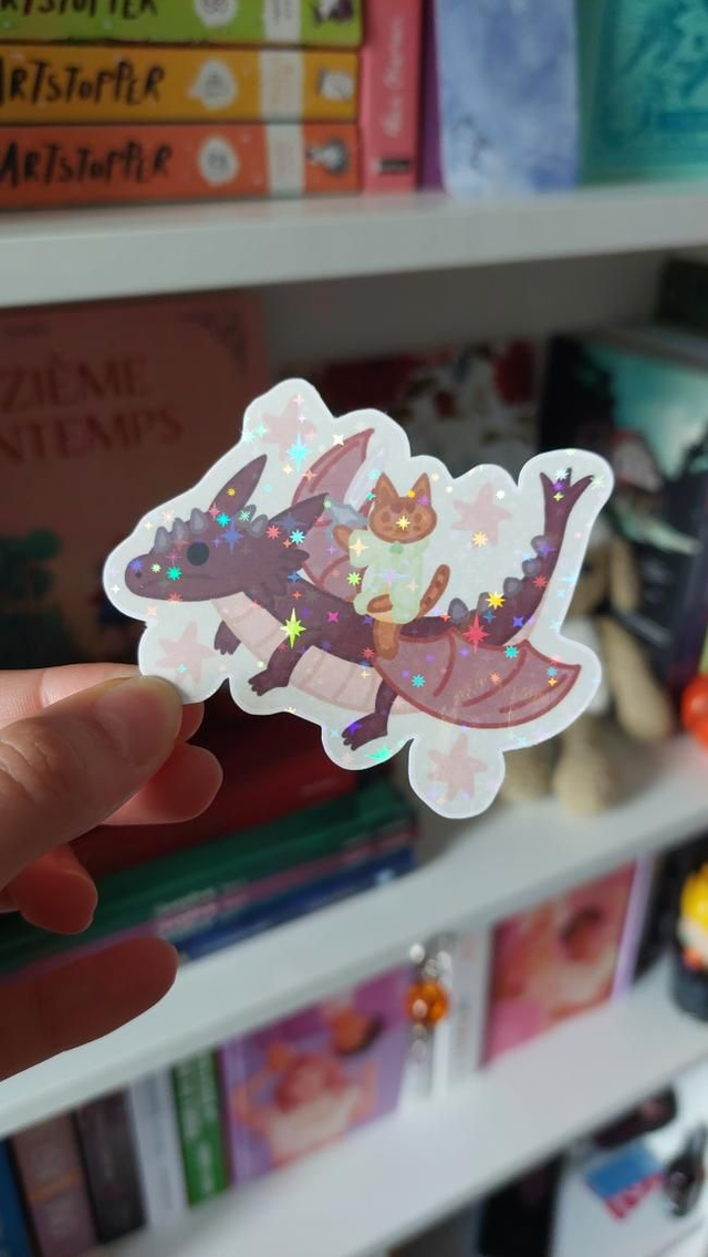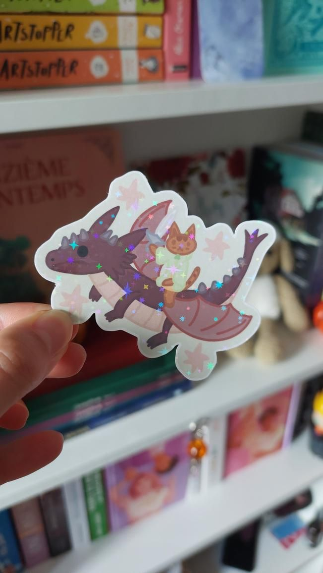 Le sticker représente Tenebris en plein avec Chatou sur le dos.