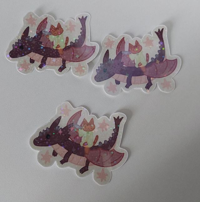 Le sticker a été imprimé sur du papier autocollant mat puis a été recouvert d'un papier holographique.